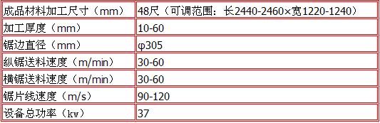 建業(yè)順達機械全自動鋸邊機技術(shù)參數(shù):